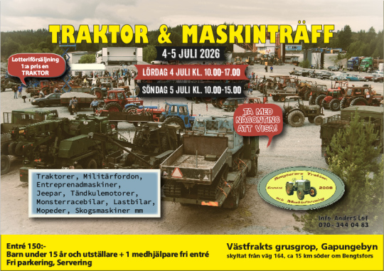 Här kan ni hitta allt från Traktorer, Militärfordon, Entreprenadmaskiner, Jeepar, Tändkulemotorer, Monsterracebilar, Lastbilar, Mopeder, Skogsmaskiner, Veteranmarknad mm